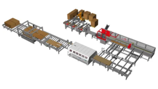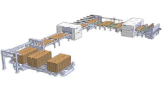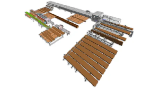 Automated complete solutions are implemented through interlinking of automated handling equipment, cross-cut systems and ripsaws. Components from other manufacturers are integrated, where necessary. Higher feed rates, interlinked processing steps, accurate workpiece guidance and automatic work flows lead to a significant improvement in productivity. Operator workload is reduced and the standard of security increased.