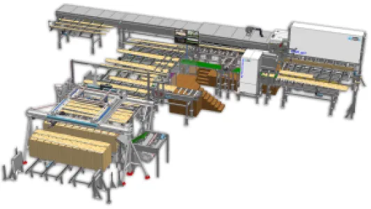 The PAUL Rip Scanning System detects edged and unedged boards in the longitudinal passage. Special algorithms for the ripping process calculate the best optimization result. Subsequently, an automatic infeed system, which detects the position of the workpieces, feeds them to a rip saw. Taking into account the previously calculated optimization, the infeed system turns and positions each individual board in the optimal position.