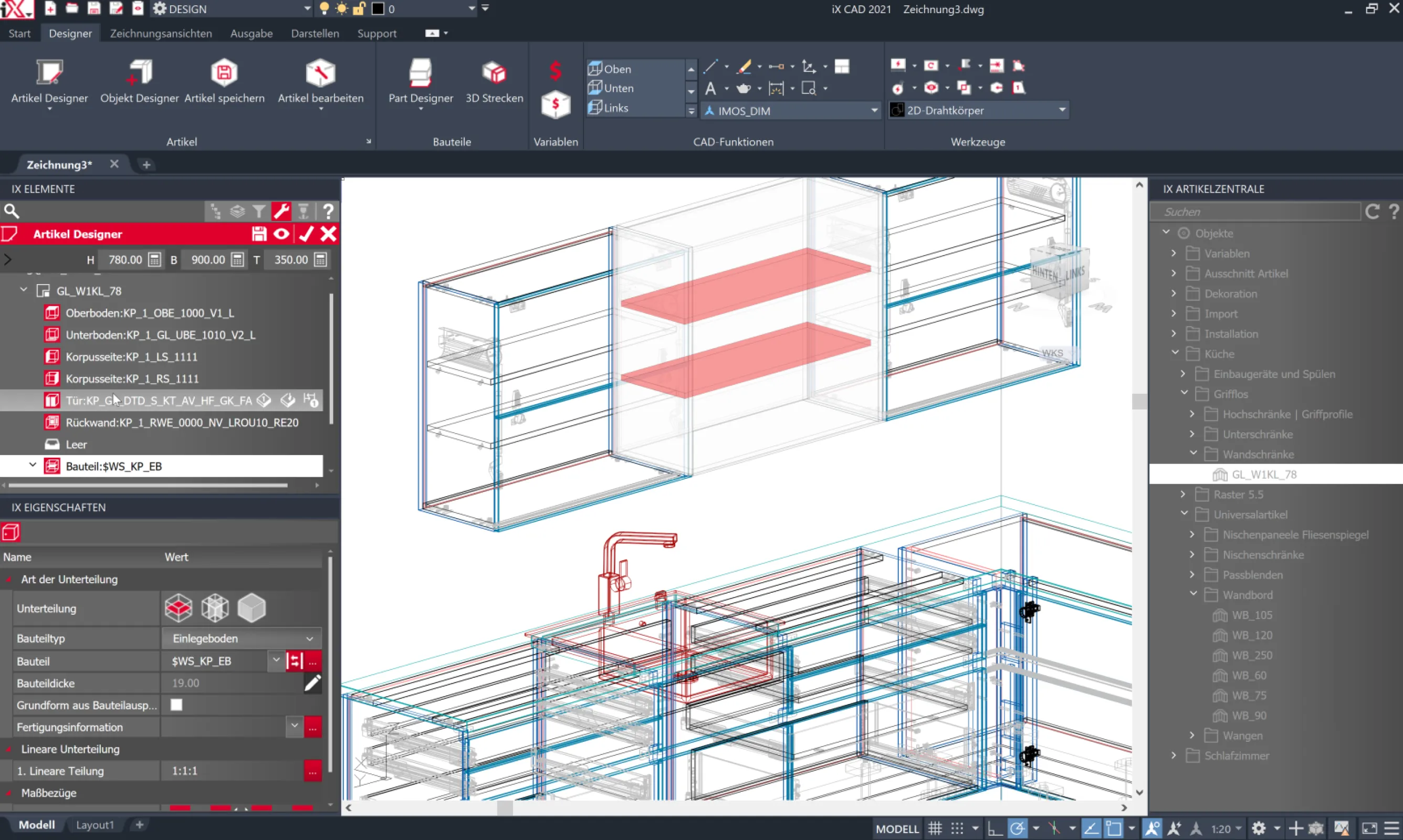 iX CAD covers all process steps from planning and design to drawing output and production. The integrated data model typical of imos iX offers the greatest possible security, even when changing and updating data